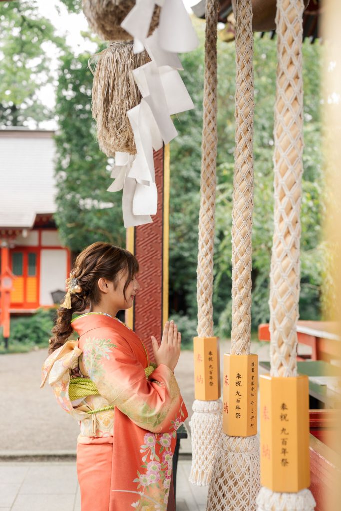 お参りしているショットはとても人気です!!いろんな角度からカメラマンさんが撮影をしてくれるので、同じ場所でも全く違う雰囲気の写真ができます。