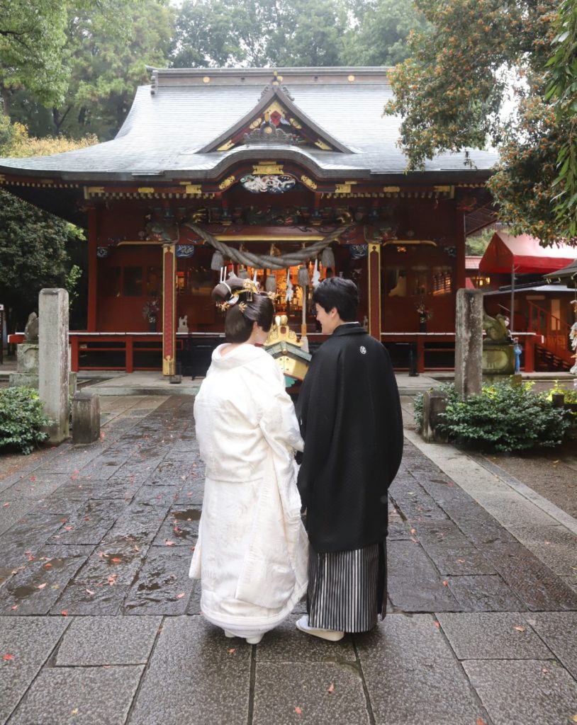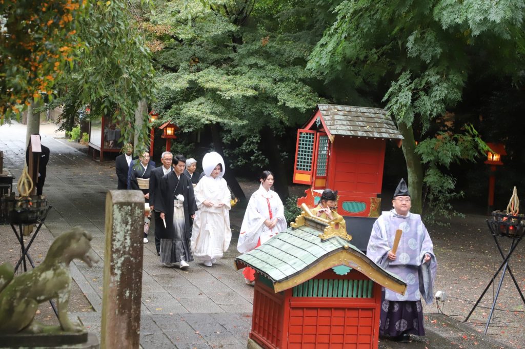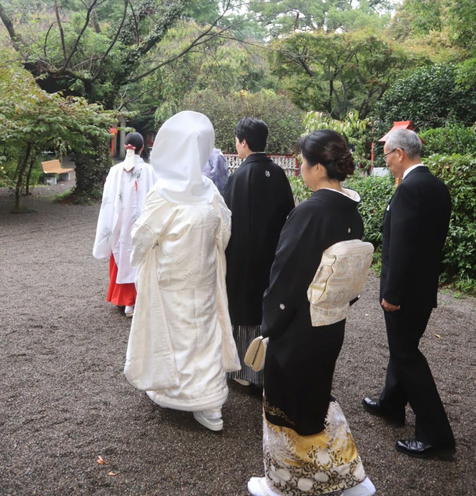 10月11日に行われた神前式、当日は雨が降ってしまいましたが、挙式開始と同時に雨が止み、外で参進を行うことができました✨