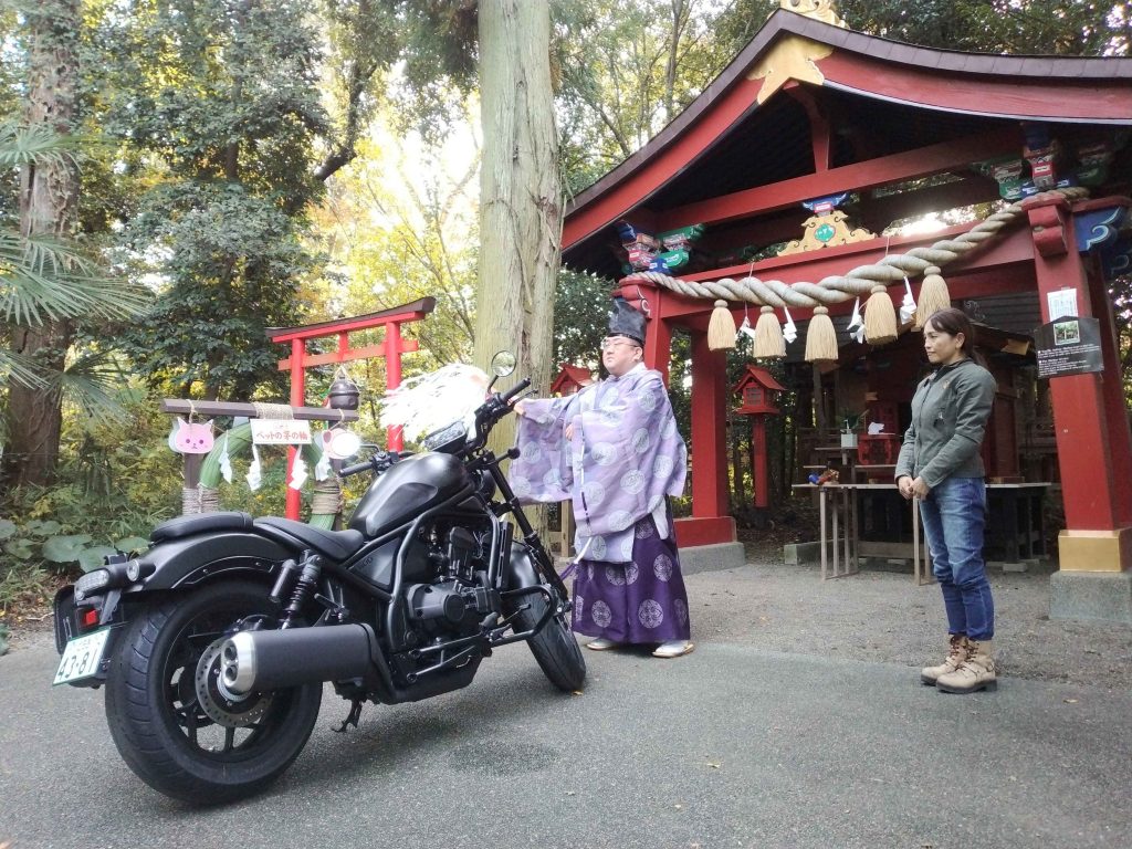ホンダのレブル1100という車種とのこと♪とてもカッコいいですね!宮司いわく、ハンドルがアメリカンな感じもしてステキですね、と。バイクにお詳しい皆さま、お分かりになりますか?