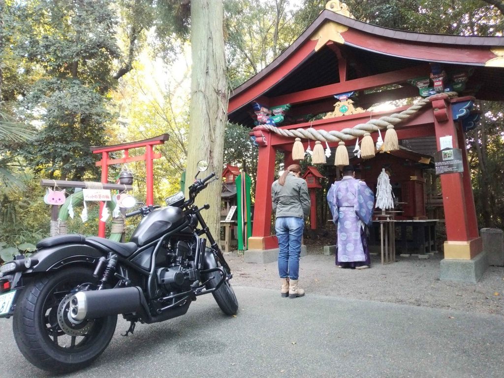 バイクのお祓いは車と同様、導きの神様を祀る、猿田毘古社(さるたひこしゃ)にて執り行います。