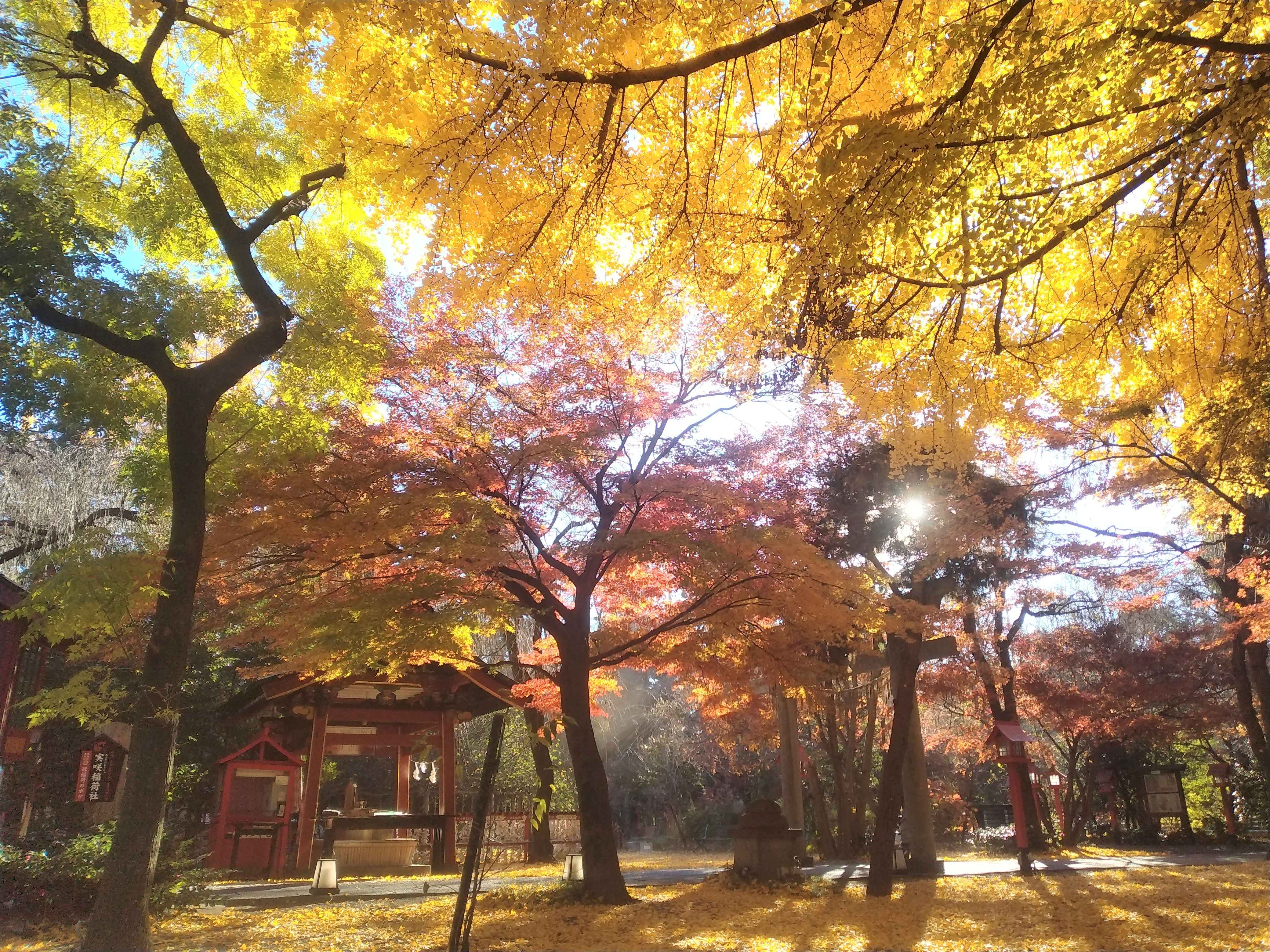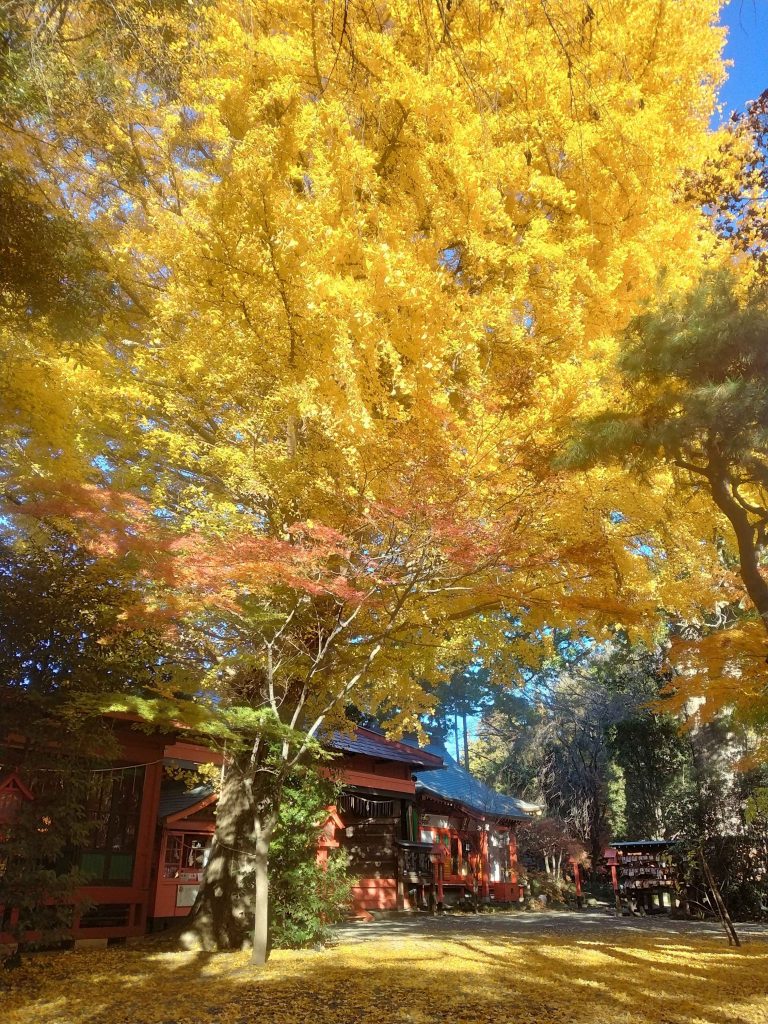 日常のこと 紅葉を見に行こうよぅ♪ 2025年12月4日 編集者 コメントをどうぞ こんにちは。出仕の朽津由美子です。境内の紅葉がとてもキレイです♪手前からモミジの朱色、イチョウの黄金色、センダンの黄緑色♪今朝8時頃に撮影しました。朝日に反射してキラキラ☆彡今年のイチョウはボリュームたっぷり♪これから落ち葉の絨毯も例年以上にふかふかになりそうです(^^)自然の色はとても美しいですね♪冠稲荷の紅葉はもう暫く楽しめます。どうぞお気軽にご来社ください(^^)