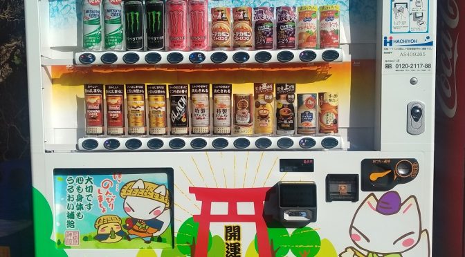 すでにお気付きの方もいらっしゃるかと思いますが、甲大鳥居の前の駐車場の所に新しい自販機が設置されました。