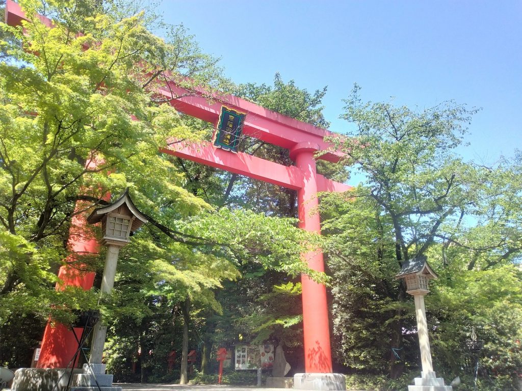 甲大鳥居のモミジは半分ほど、紅く色づいています。これから七五三参りにいらっしゃるご家族様には境内での記念撮影もおすすめです(^^)